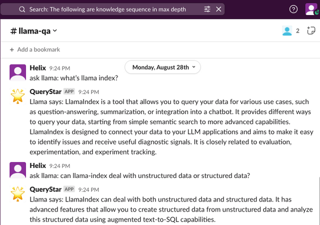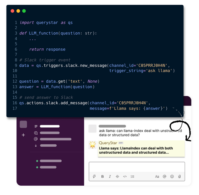 QueryStar 🌟 + LlamaIndex 🦙: Slack Bot that Understands Your Data